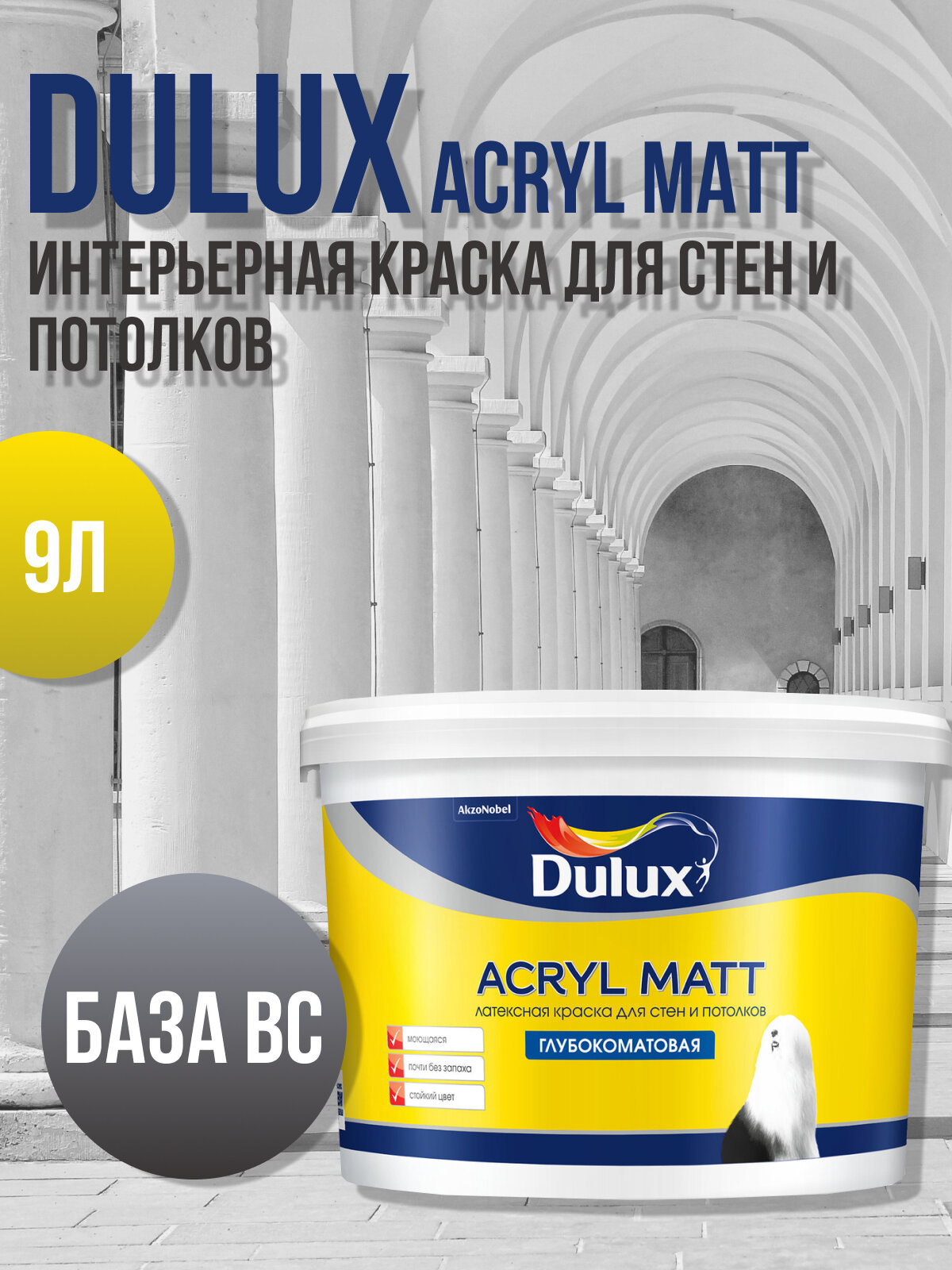 Dulux Acryl Matt Латексная краска для стен и потолков (под колеровку, глубокоматовая, база BC, 9 л)
