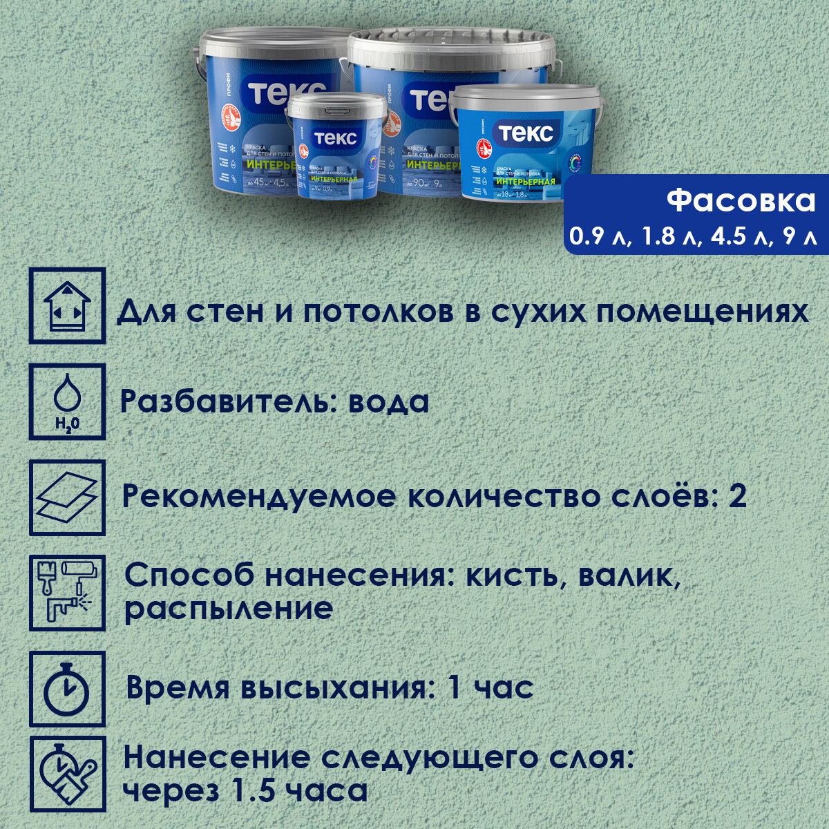 Текс Интерьерная краска в/д (9л) профи / текс Для интерьеров краска для стен и потолков в сухих помещениях (9л) класс профи