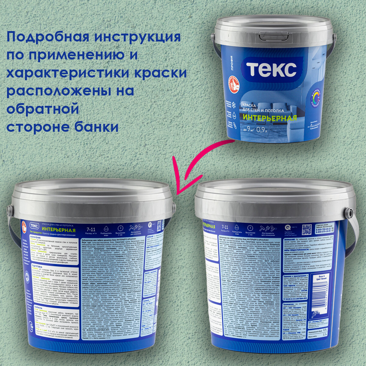 Текс Интерьерная краска в/д (0,9л) профи / текс Для интерьеров краска для стен и потолков в сухих помещениях (0,9л) класс профи