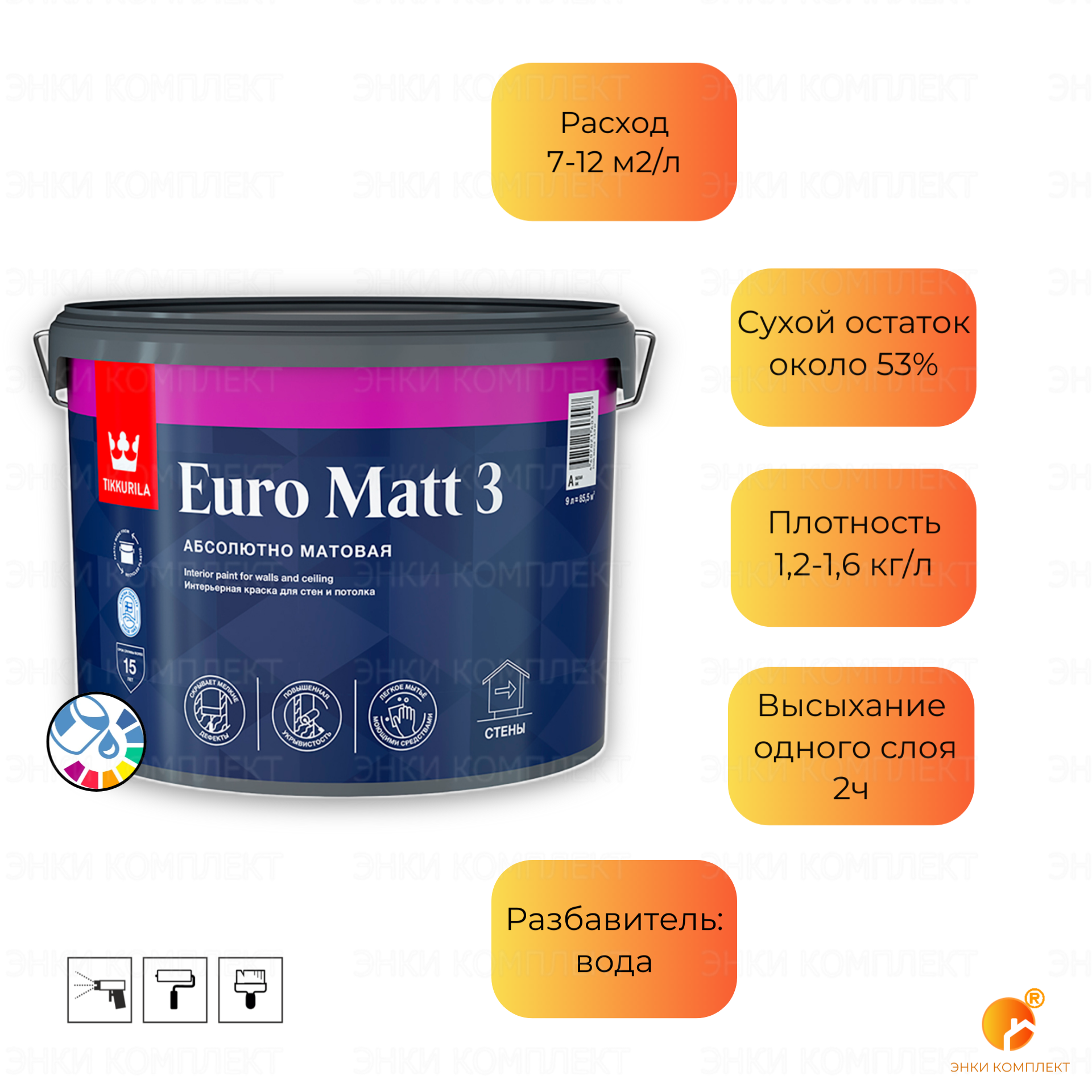 TIKKURILA EURO MATT 3 краска интерьерная для стен и потолков, абсолютно матовая, база C (2,7л)