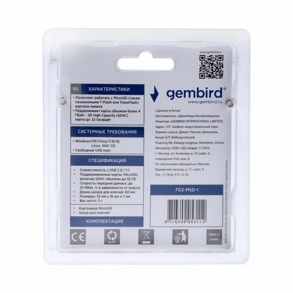 Ниже Вы можете прочитать отзывы на Кардридер Gembird FD2-MSD-1 8716309053112, ознакомится с подробными характеристиками, посмотреть интересные обзоры и фотографии на Кардридер Gembird FD2-MSD-1 8716309053112.