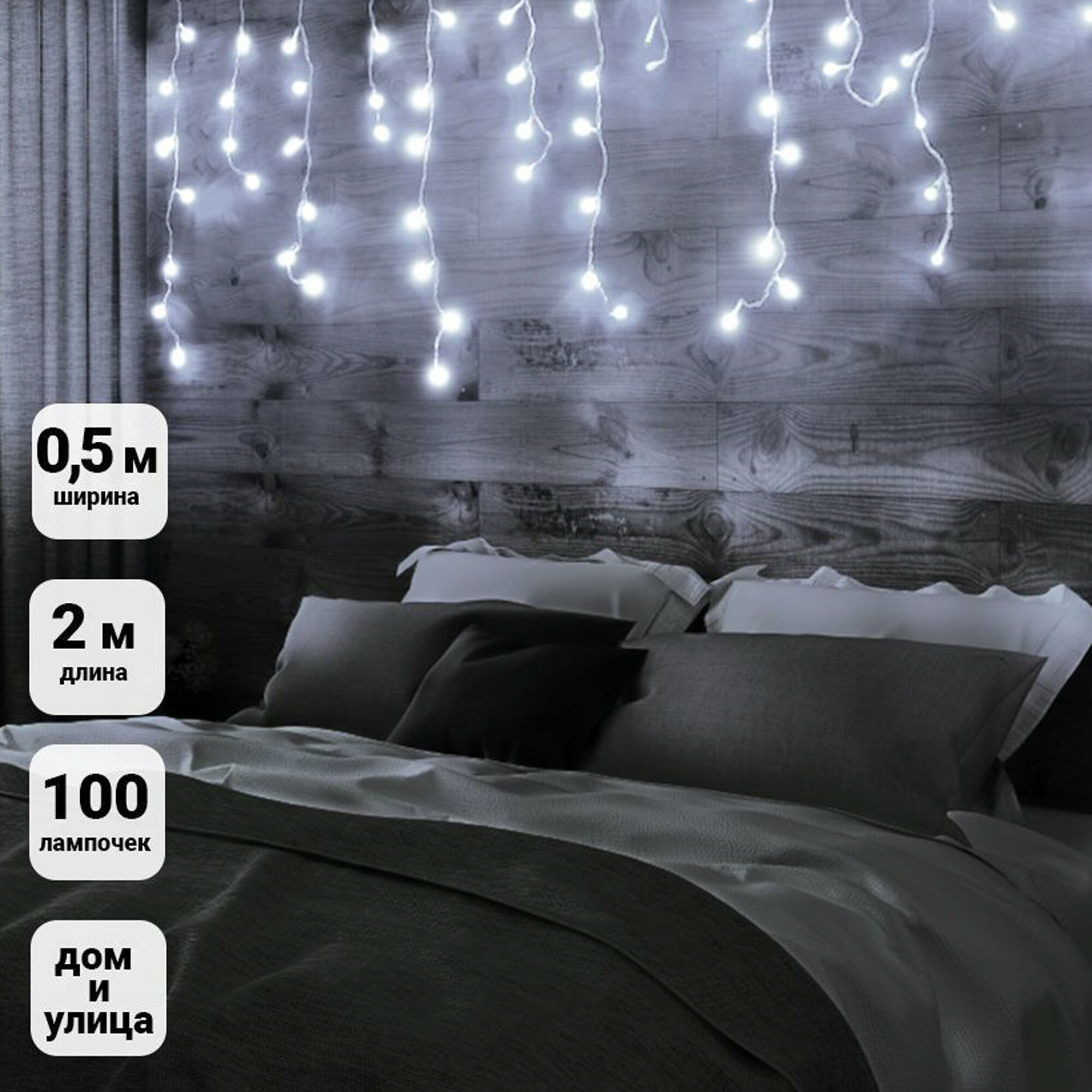 Гирлянда бахрома SH LIGHTS 100 LED белый 2х0,5 м