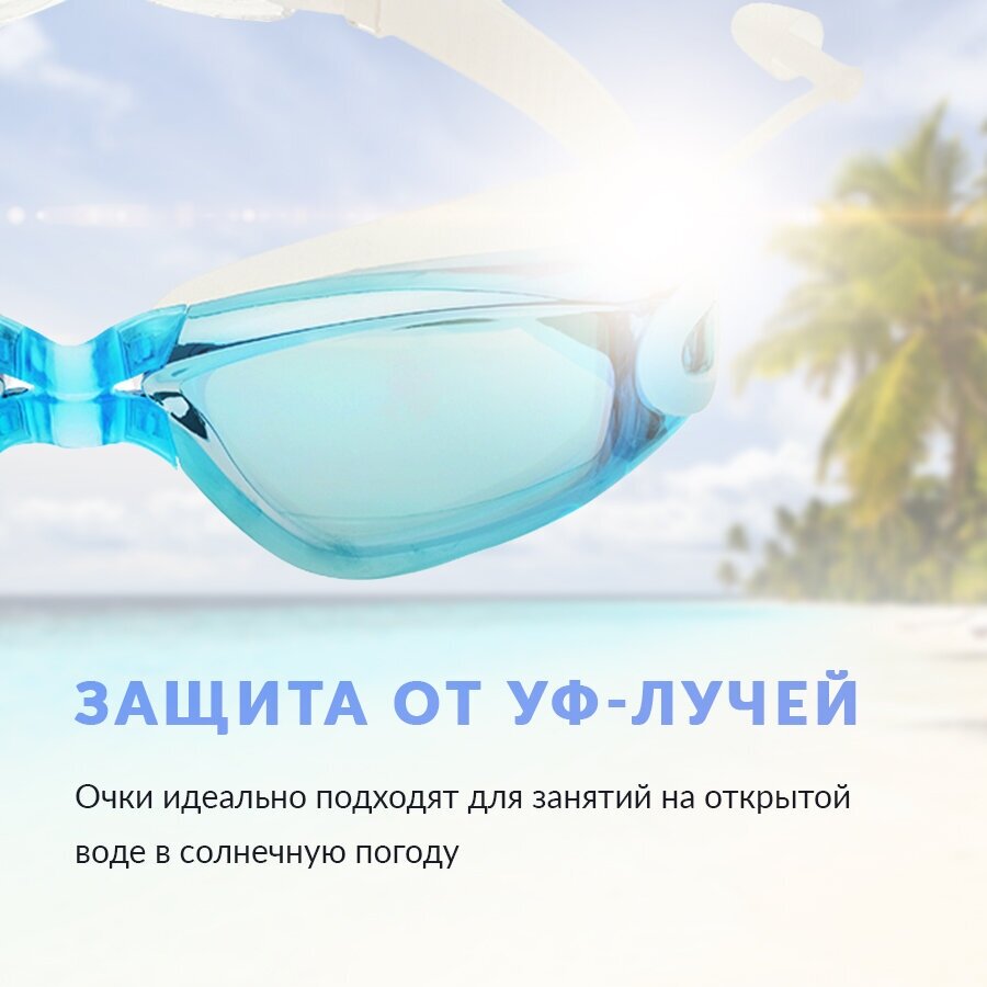 Купить Очки для плавания с берушами, зеркальные линзы голубые / Очки для бассейна женские, взрослые, мужские