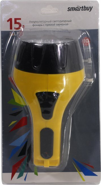 Фонарь Smartbuy SBF-85-Y, аккумуляторный, светодиодный, 15 LED, прямая зарядка от сети, желтый ( Артикул 307991 )