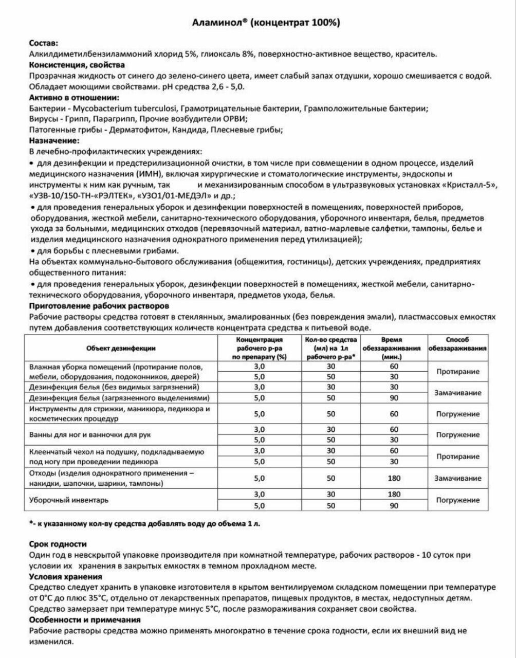 Средство дезинфицирующее 1 л, аламинол, концентрат