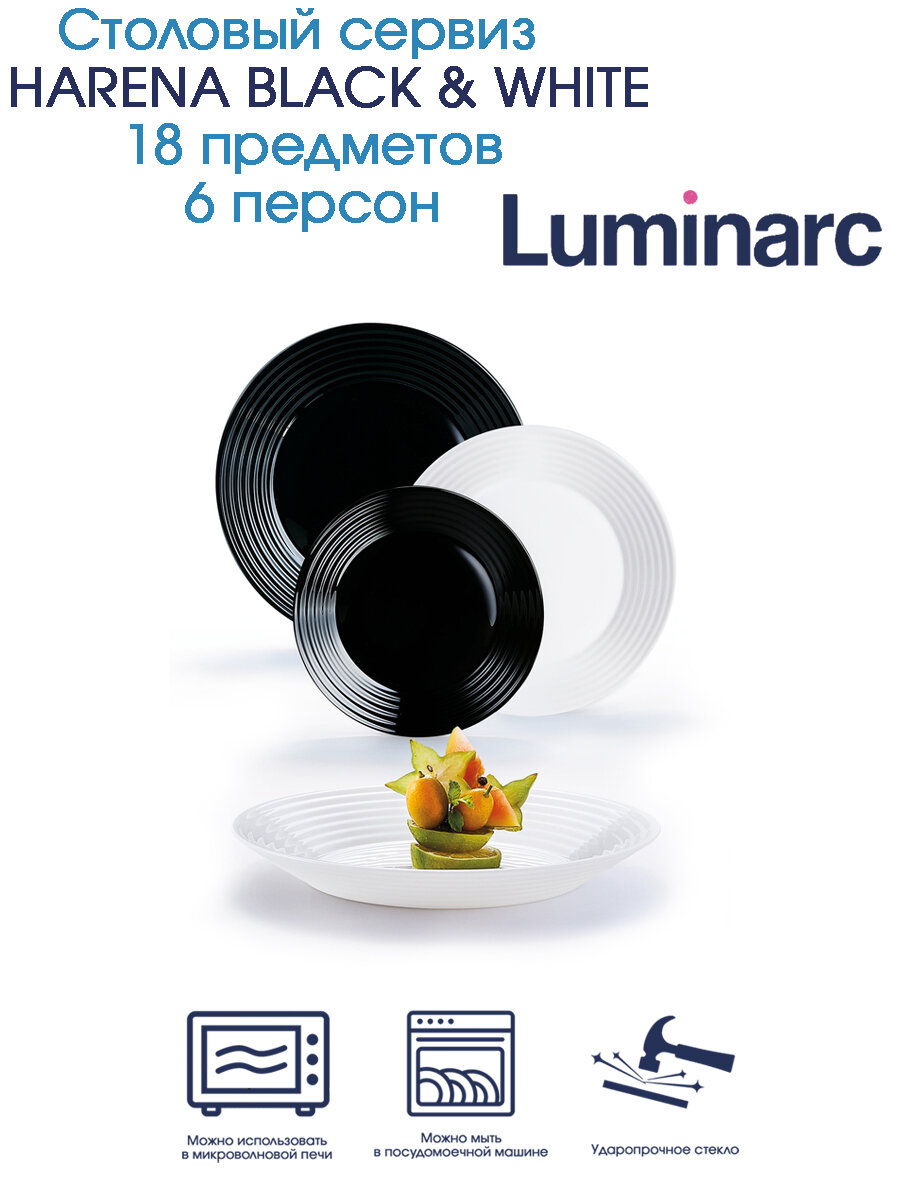 Сервиз столовый Luminarc HARENA BLACK & WHITE, 18 предметов (N1518)