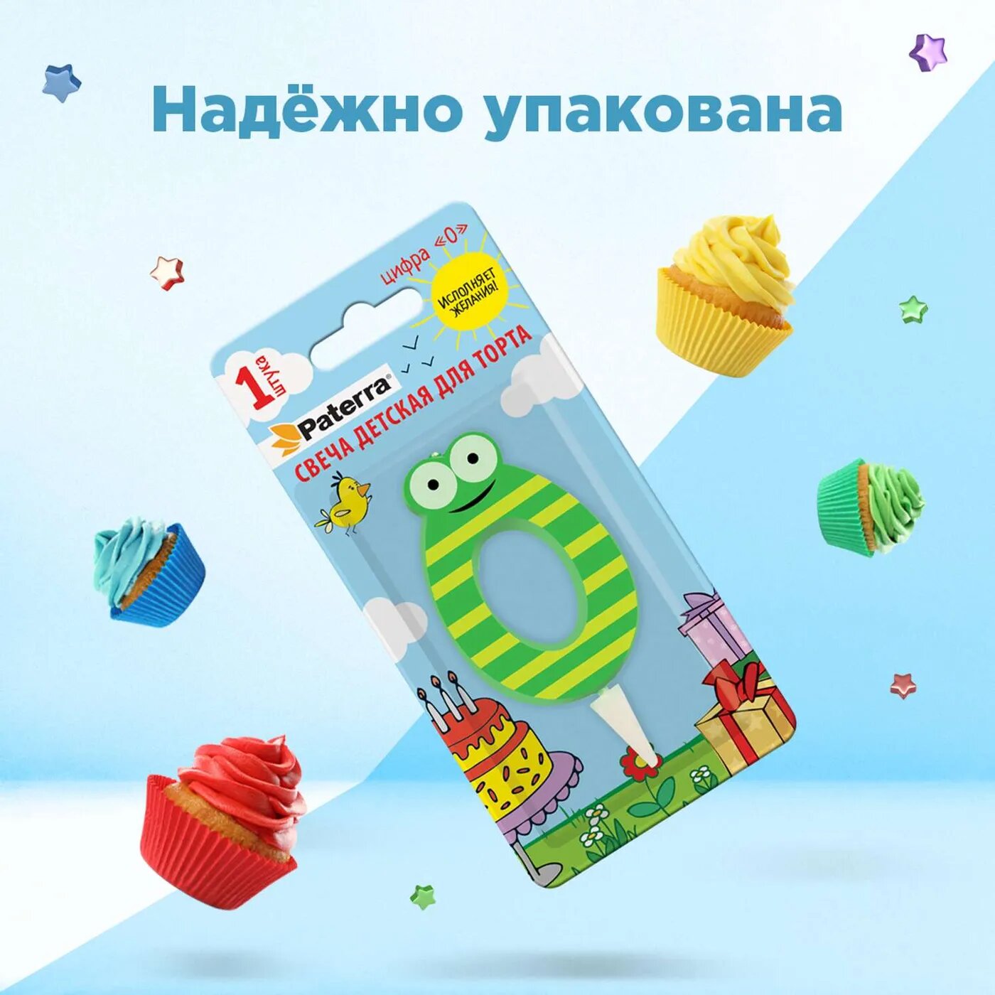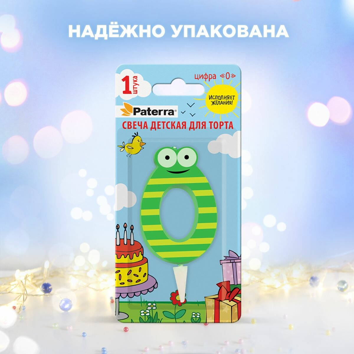 Свеча детская для торта PATERRA, цифра 0 (1шт.в упаковке)