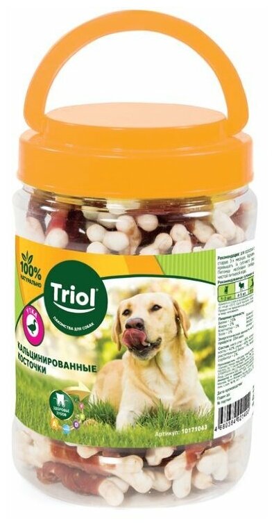 Triol Кальцинированные косточки с уткой для собак, 450г (банка)