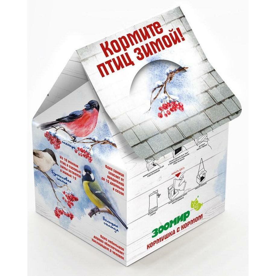 Зоомир Дом - кормушка с кормом для уличных птиц 2 порции 4636 0,3 кг 34517