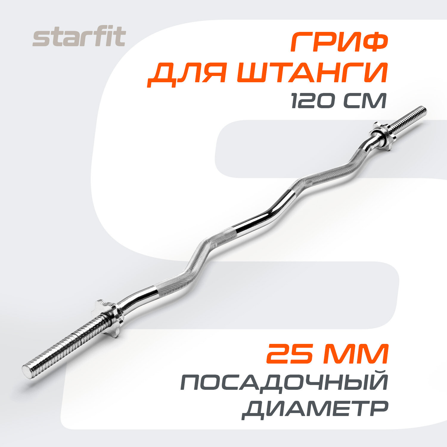 Гриф для штанги BB-101 EZ-образный, d=25 мм, 120 см, металл, с металлическими замками, хром, Starfit