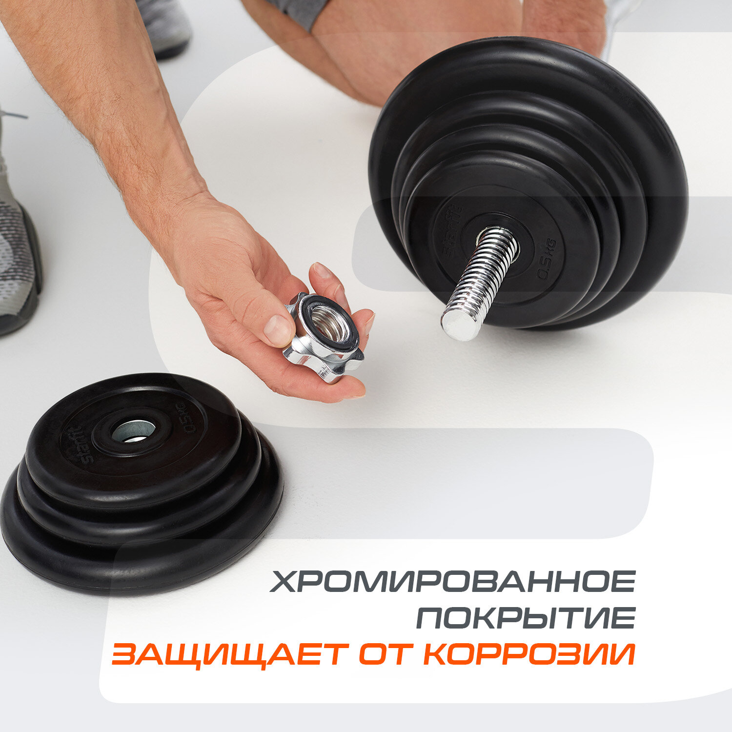 | Отзыв: | Вес 5кг, гайки с резинками. Блины 25мм сели без проблем, 26мм тоже думаю болтаться не будут. |