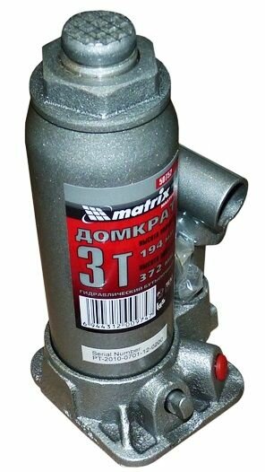 Ниже Вы можете прочитать отзывы на Домкрат гидравлический бутылочный Matrix 3 т, h подъема 194-372 мм, в пласт. кейсе 50752, ознакомится с подробными характеристиками, посмотреть интересные обзоры и фотографии на Домкрат гидравлический бутылочный Matrix 3 т, h подъема 194-372 мм, в пласт. кейсе 50752.
