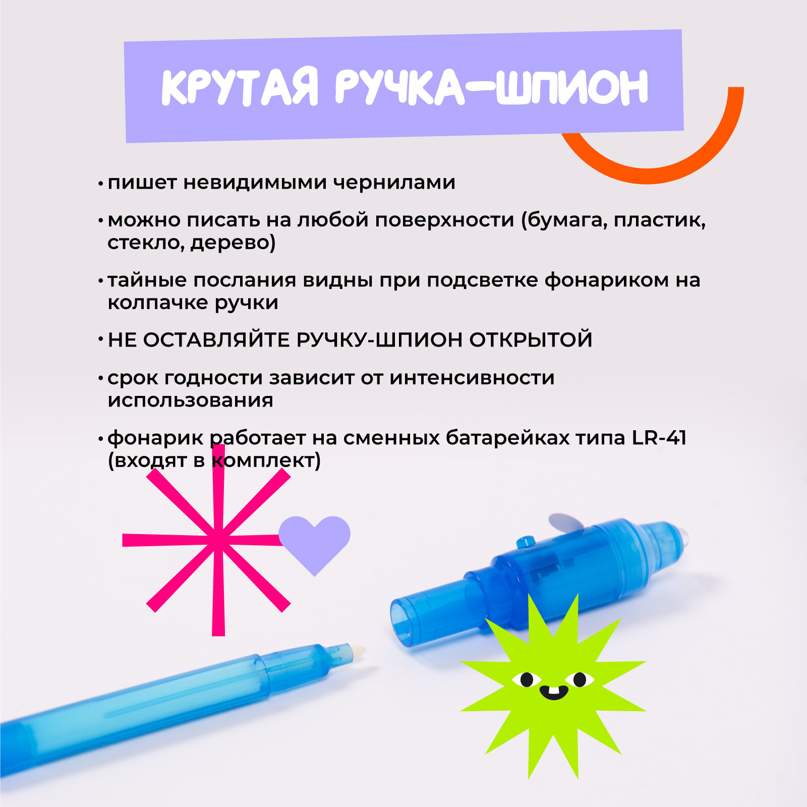 Ручка шпион, уф фонарик, ручки, Рисуй светом интересное: