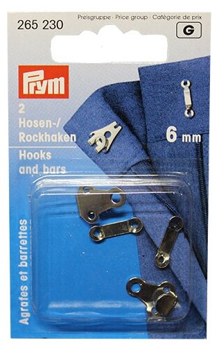 PRYM 265230 Крючки для юбок и брюк 6 мм в блистере 2 шт. под никель