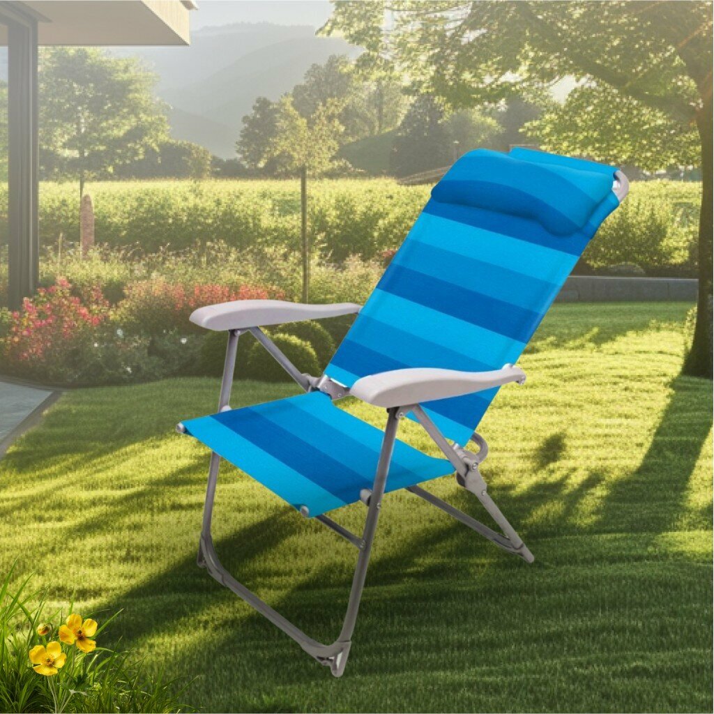 Кресло-шезлонг складное, металл, 75х59х109 см, 120 кг, 8 положений спинки, синее, Nika, К2/С