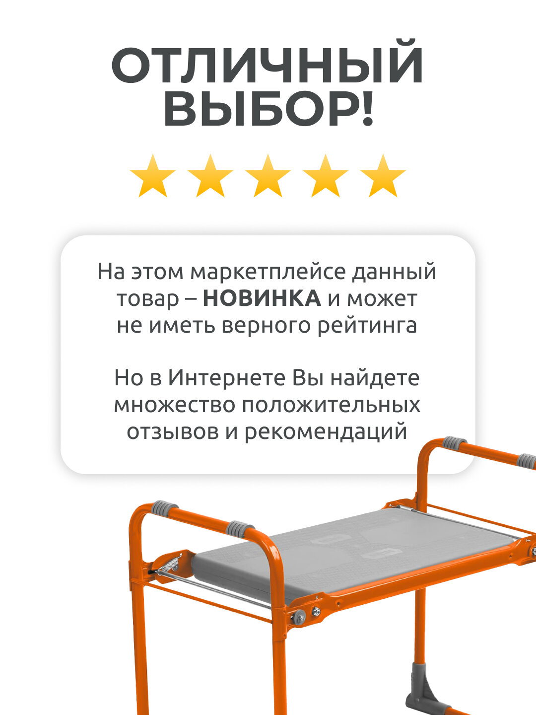 Скамейка оранжевого цвета хорошо заметна на участке. Прочная, лёгкая , удобная для переноски , имеются рукояти, за которые удобно ее держать. быстро складывается и раскладывается. Использую скамейку для множества целей. Можно сидя пропалывать грядки , а если перевернуть, то стоя на коленях. Использую как подставку , на которую можно встать и собирать вишни, сливы, яблоки, груши и т д . В яркий солнечный день , перемещаюсь с данной скамейкой как с сумочкой , по всему саду и ищу тень . Сбоку имеются поручни, на которые можно повесить различные инструменты, которые нужны для работы в саду, например , секатор, нож, и тд .В разобранном виде занимает совсем мало места. Не боится влаги, если оставите ее на улице. Советую приобретать такую скамейку , вы не пожалеете. Я очень довольна. Использовала все лето и осень. Оценка 5 |