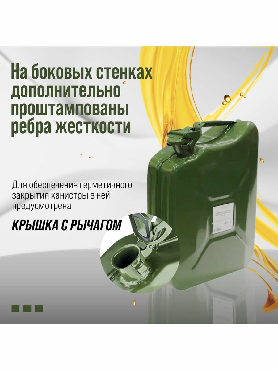Канистра стальная для ГСМ, 10 л, металлическая, крышка с рычагом