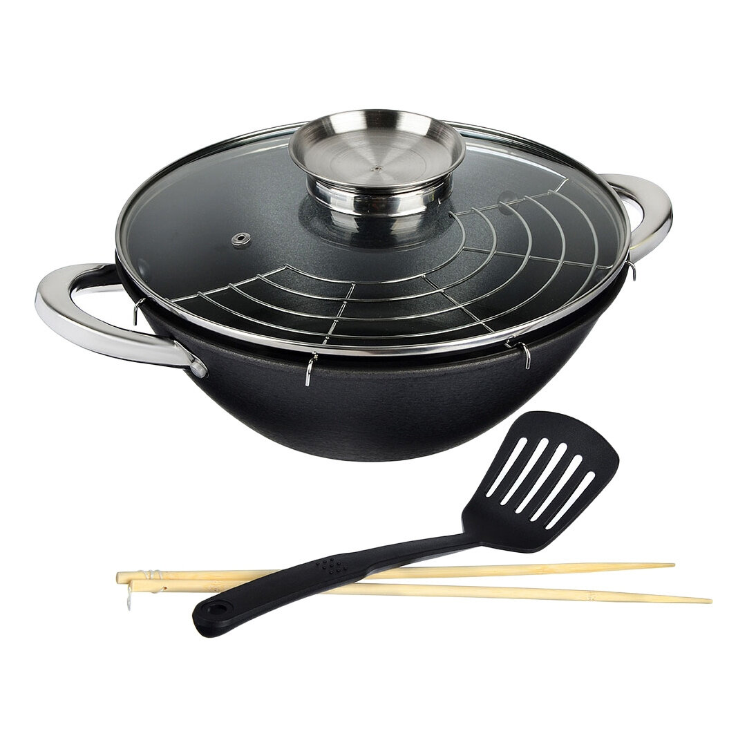 SATOSHI (808-031), Казан 4,4л (чугун, d: 30см, нержавеющие ручки, решётка, стеклянная крышка, нейлоновая лопатка, бамбуковые палочки)