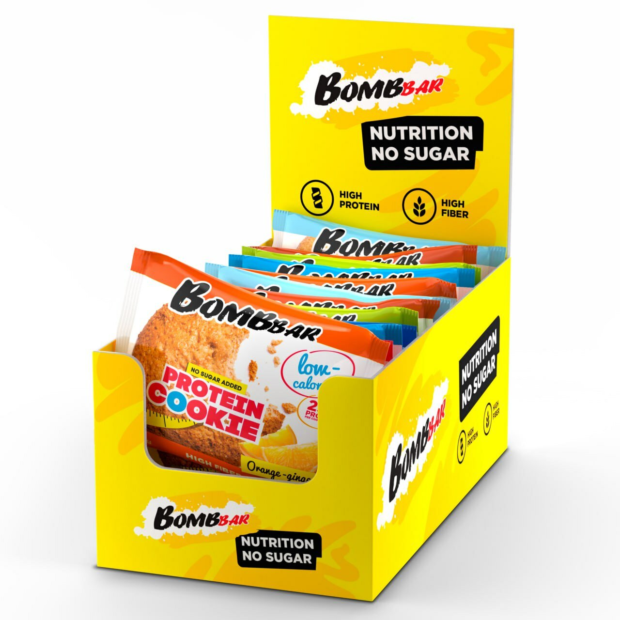Низкокалорийное протеиновое печенье Bombbar Protein Cookie без сахара "Ассорти", 12шт х 40г