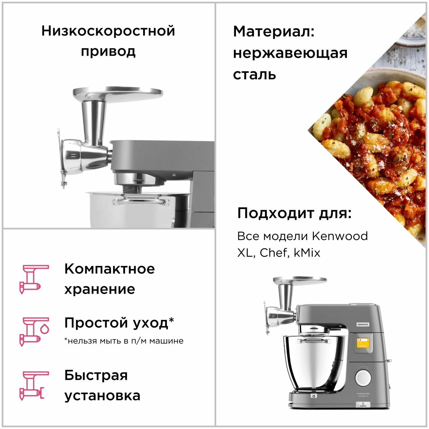 Насадка для пасты Kenwood KAX910ME, серебристый, для кухонной машины kMix/Sense интересное: