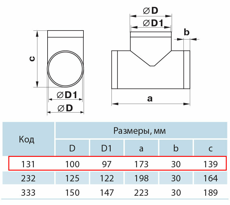 Тройник круглых каналов D100мм вентс 131