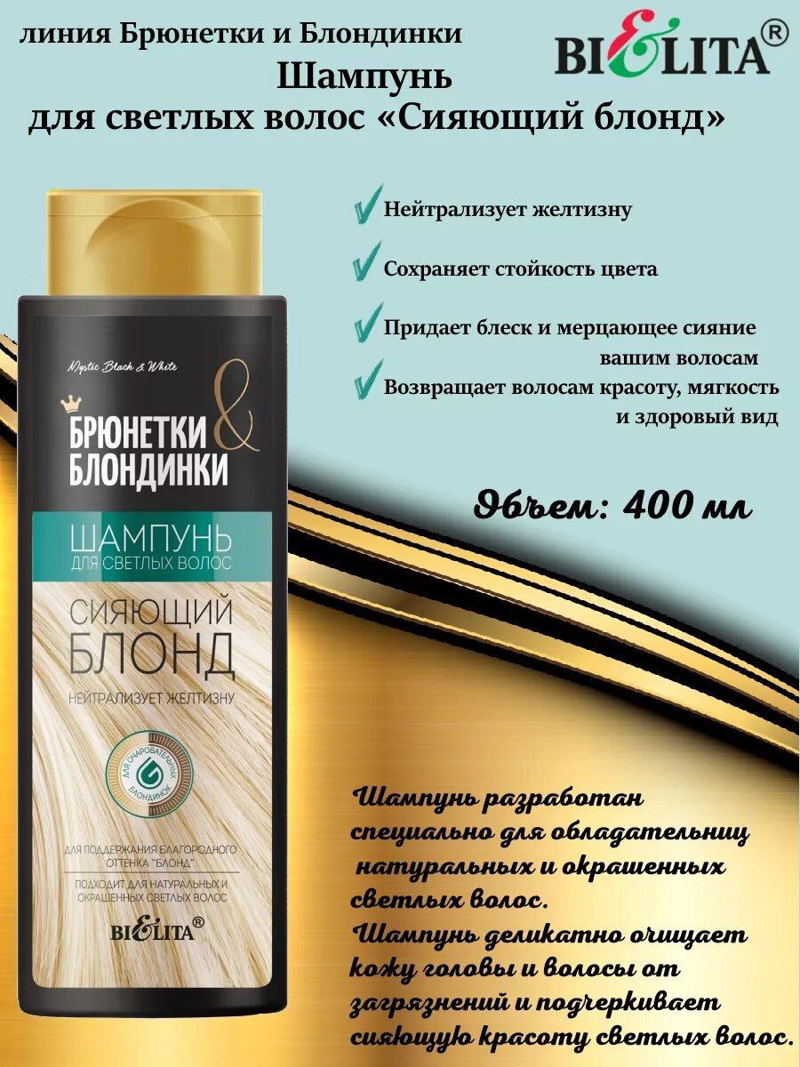 Белита Брюнетки и Блондинки Шампунь для светлых волос Сияющий блонд 400мл