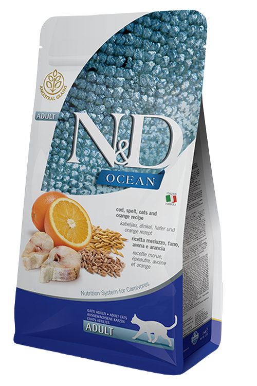 FARMINA CAT N&D OCEAN CODFISH SPELT OATS & ORANGE низкозерновой для взрослых кошек с треской, спельтой, овсом и апельсином (1,5 кг)