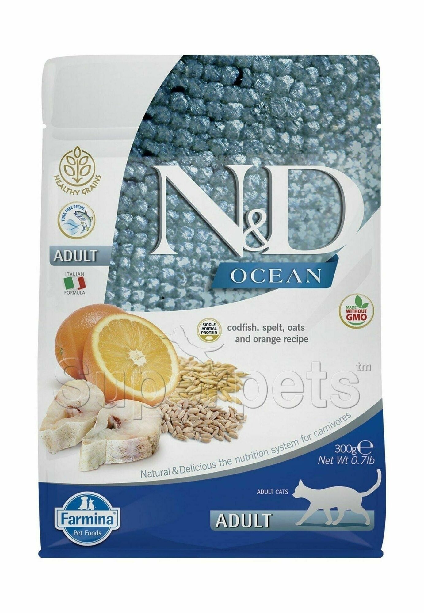 Farmina N&D Cat Ocean Godfish&Orang Adult корм для взрослых кошек Треска,спельта, апельсин и овес, 300 г.
