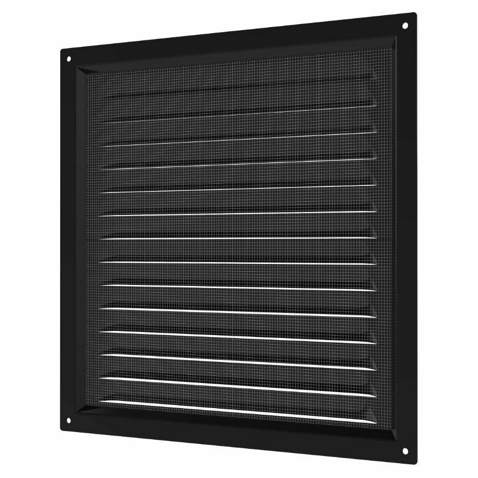 Решетка металлическая ERA 2525МЭ black, с сеткой, 250х250 мм, окрашенная сталь, чёрный