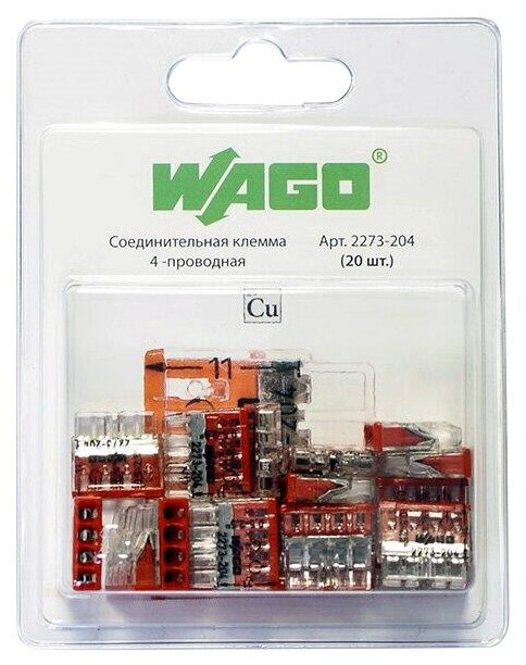 WAGO Соединительная клемма WAGO 4-х проводная (2273-204) 6 шт. в блистере