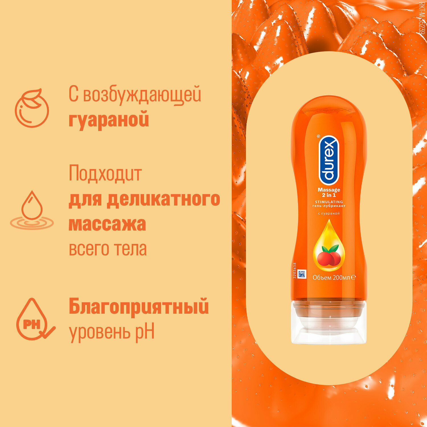 Купить Гель-лубрикант Durex Massage 2 in 1 Stimulating увлажняющий с гуараной, 200 мл
