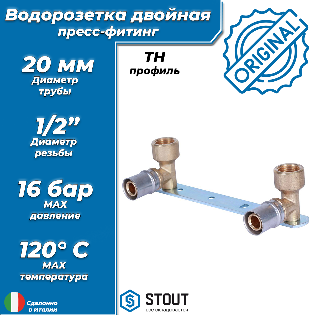 Водорозетка двойная STOUT - 20 x 1/2" (прессовая, для металлопластиковых труб)