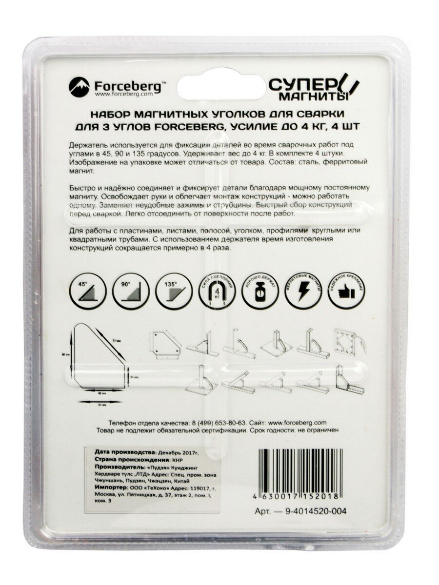 Купить Forceberg Набор магнитных уголков для сварки для 3 углов , усилие до 4 кг, 4 шт 9-4014520-004