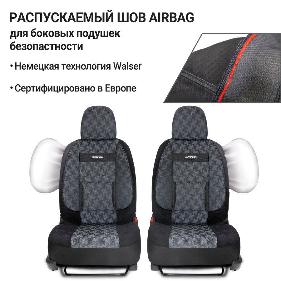 Авточехлы универсальные AUTOPROFI SGN-1505 BK/D.GY SIGNATURE, велюр, 5 мм поролон, 3D крой, 15 пред., чёрный/темно-серый