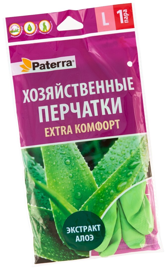 Купить Перчатки резиновые EXTRA Комфорт с алоэ, р-р L, PATERRA