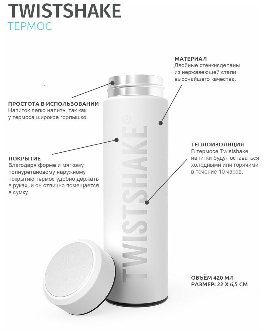 СохранитьТермос Twistshake (Hot or Cold Bottle) 420 мл. Белый (White). Арт. 78109 интересное:
