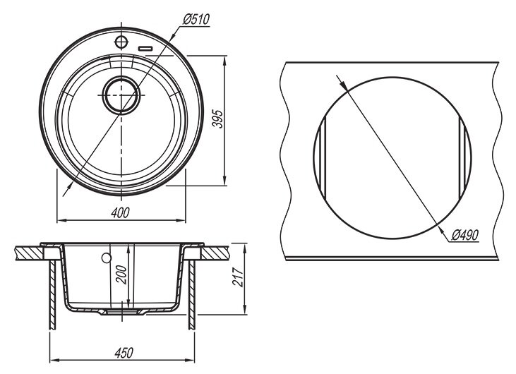 Мойка для кухни Florentina Никосия d510х217 мм врезная круглая без крыла кварц антрацит