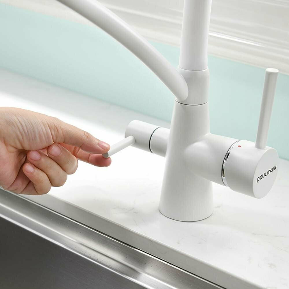 Смеситель Paulmark Siegen Si213111-431TW для кухни, с подключением к фильтру, цвет белый матовый \ белый
