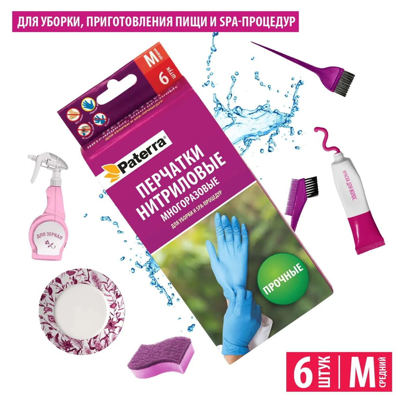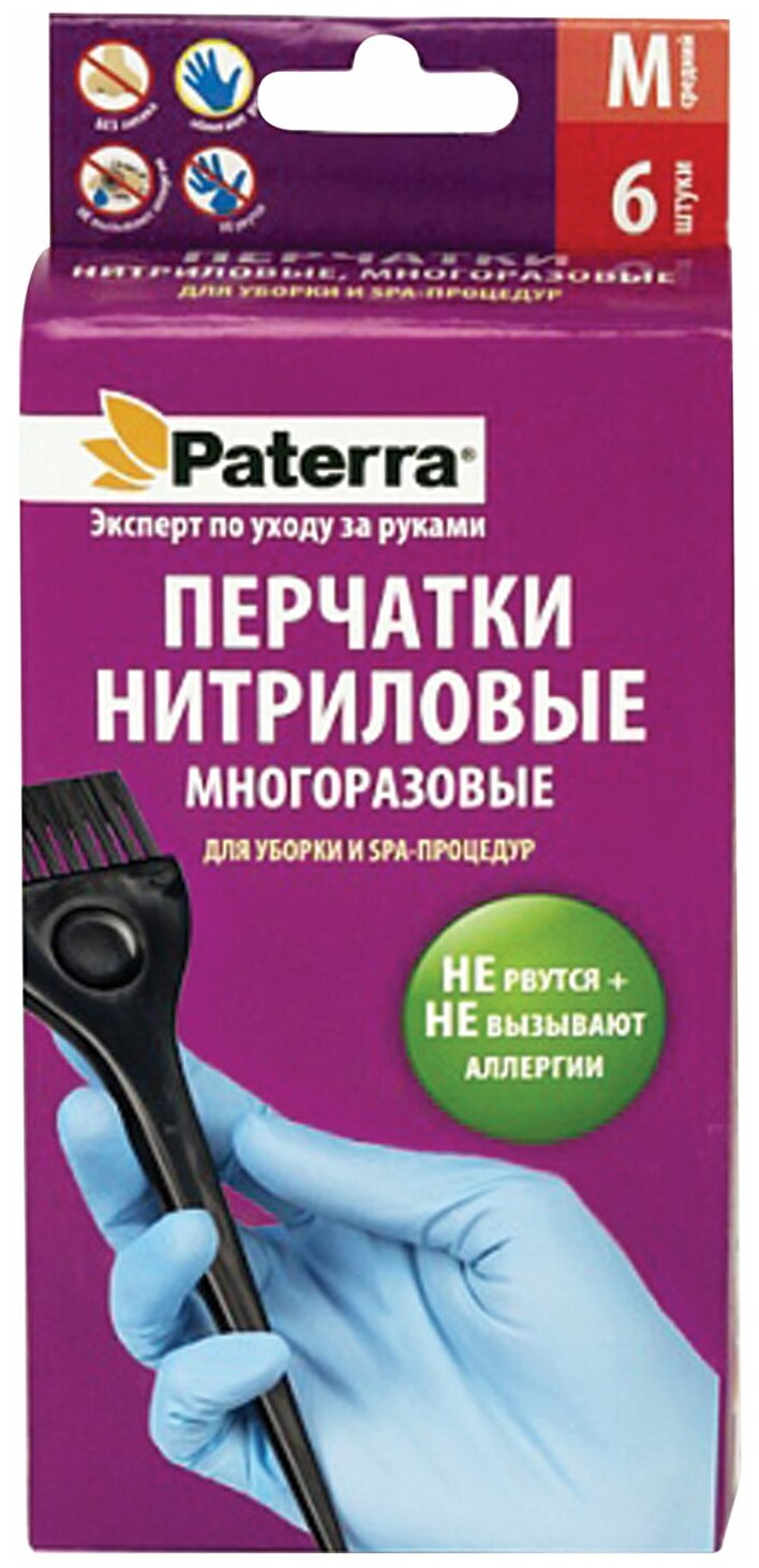 PATERRA Перчатки нитриловые универсальный размер 6 шт в картонной упаковке 402-410