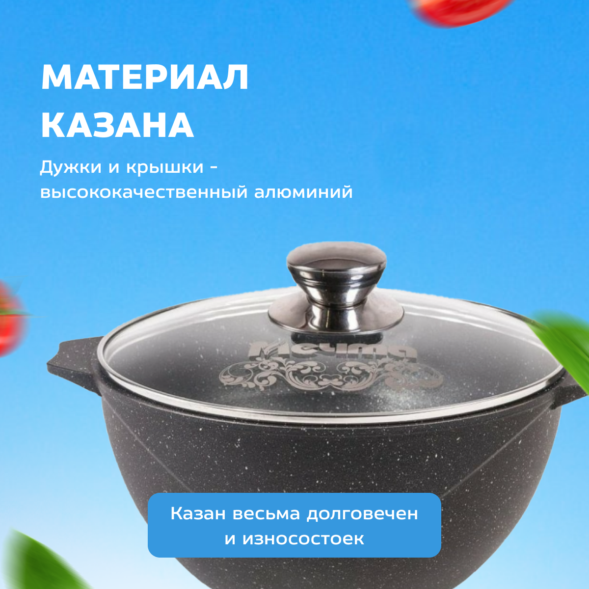 Казан для плова Мечта 8 л Гранит с антипригарным покрытием с крышкой, НЕ индукционный