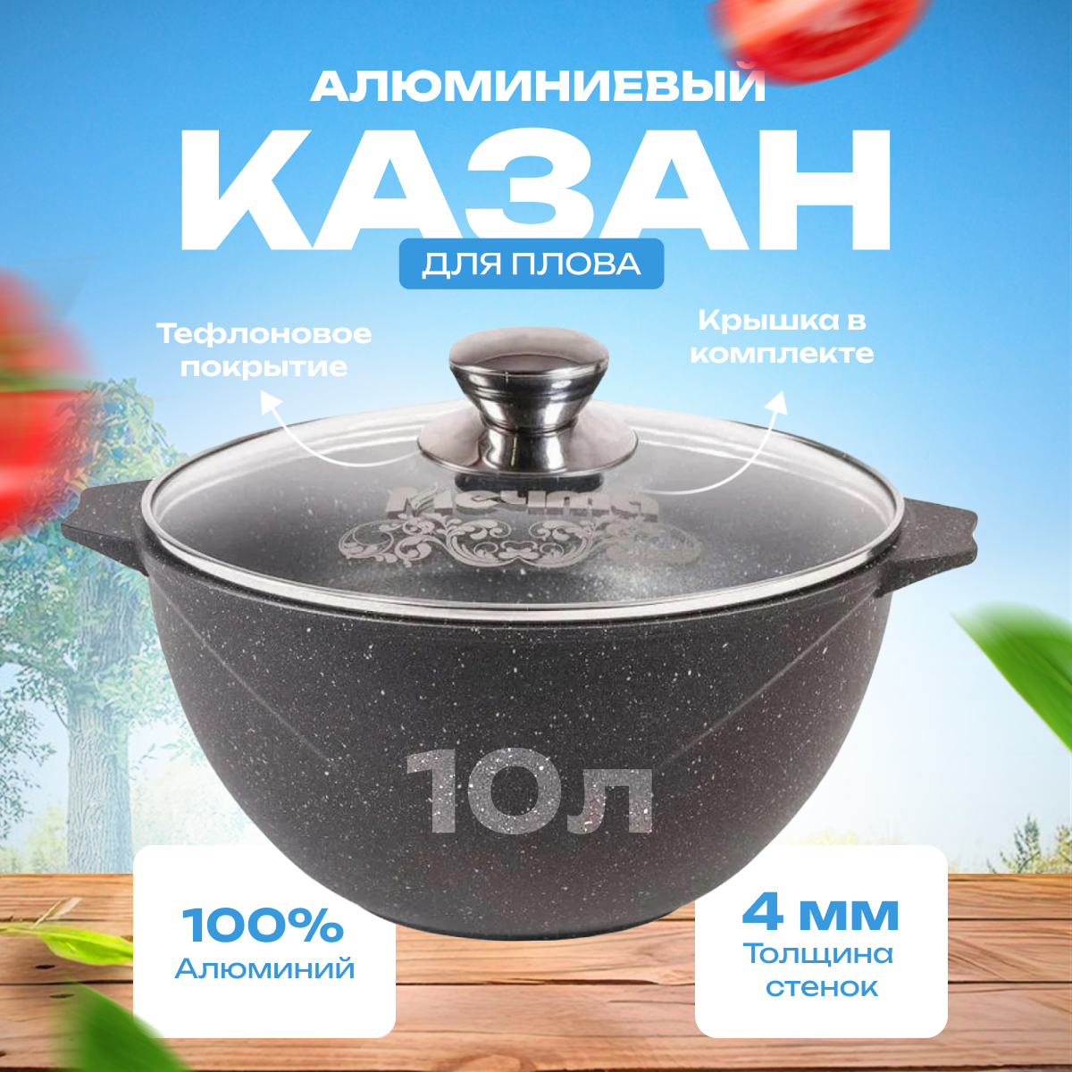 Казан для плова Мечта 8 л Гранит с антипригарным покрытием с крышкой, НЕ индукционный