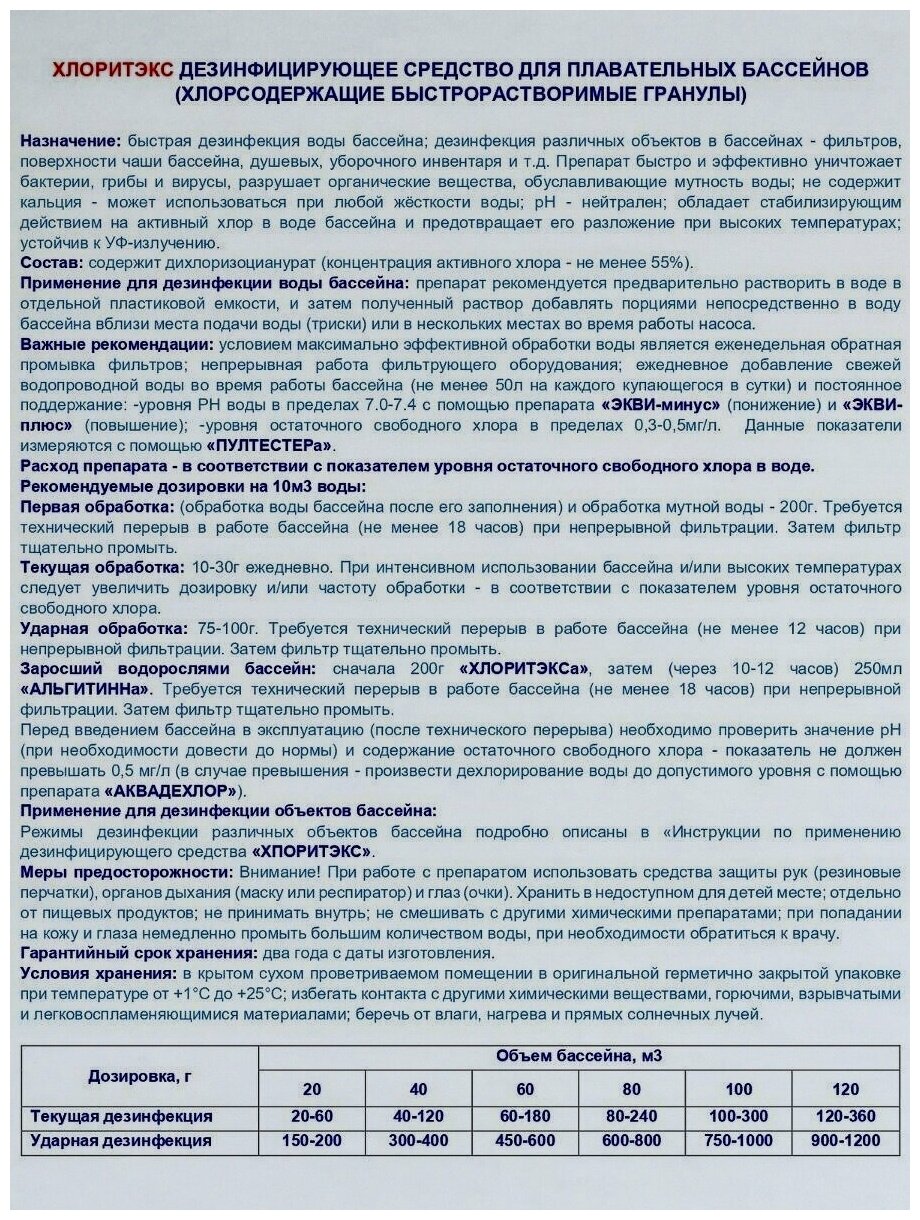 Хлоритэкс - дезинфицирующее средство для бассейнов.800 г. таблетки по 20г.