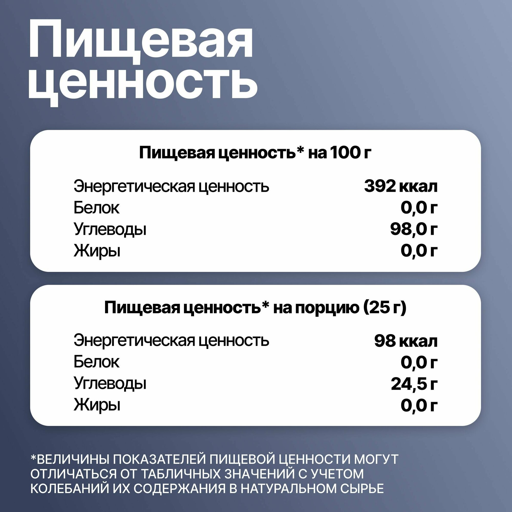| Содержание углеводов в 100 г | 98 г |