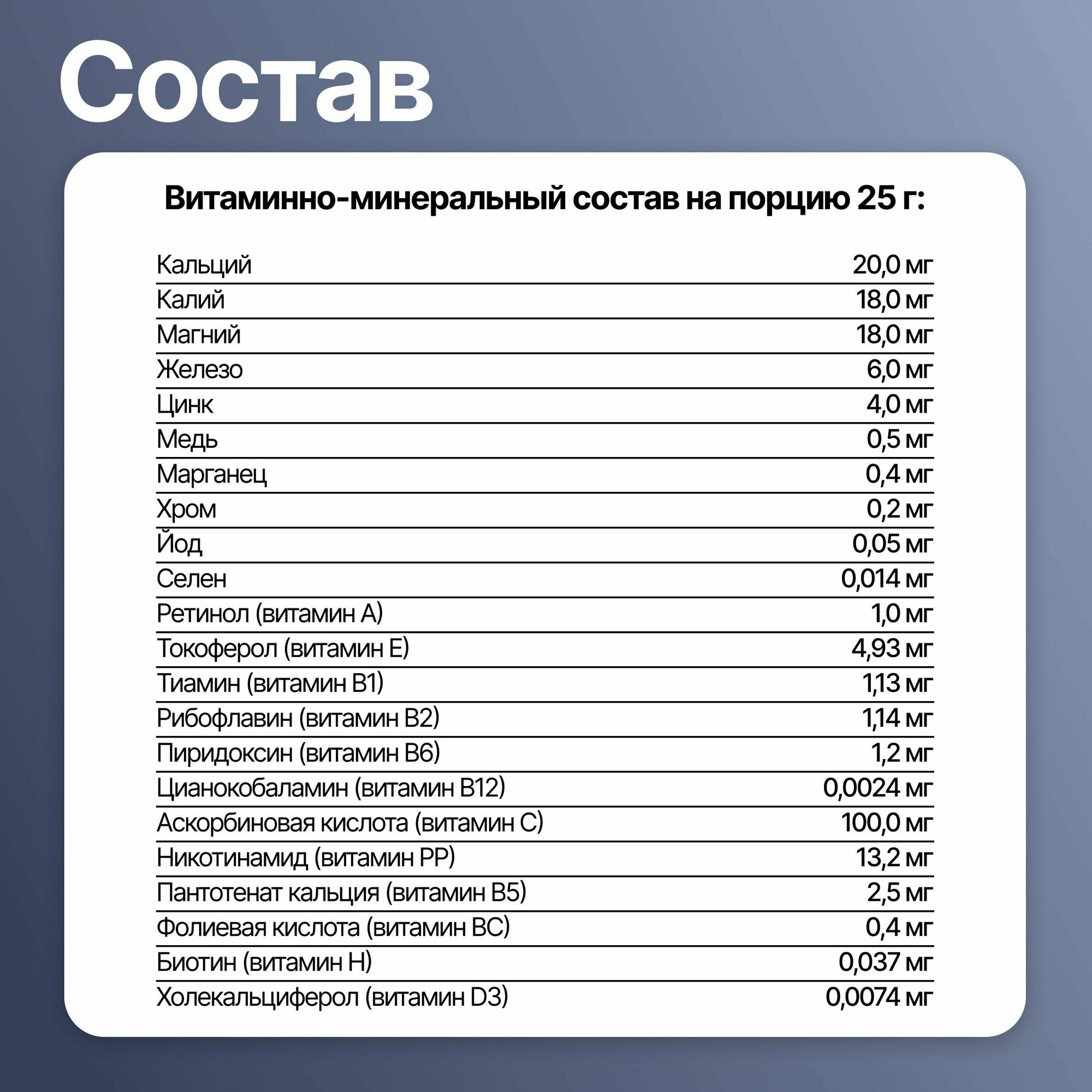 | Основные ингредиенты | витамины и минералы |