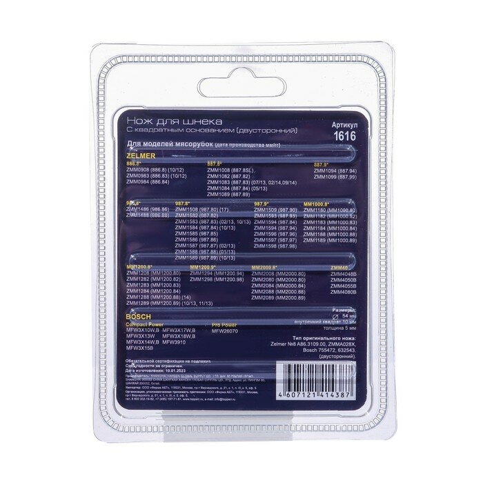 Купить Нож с квадратным основанием Topperr для мясорубок Zelmer и Bosch, двусторонний