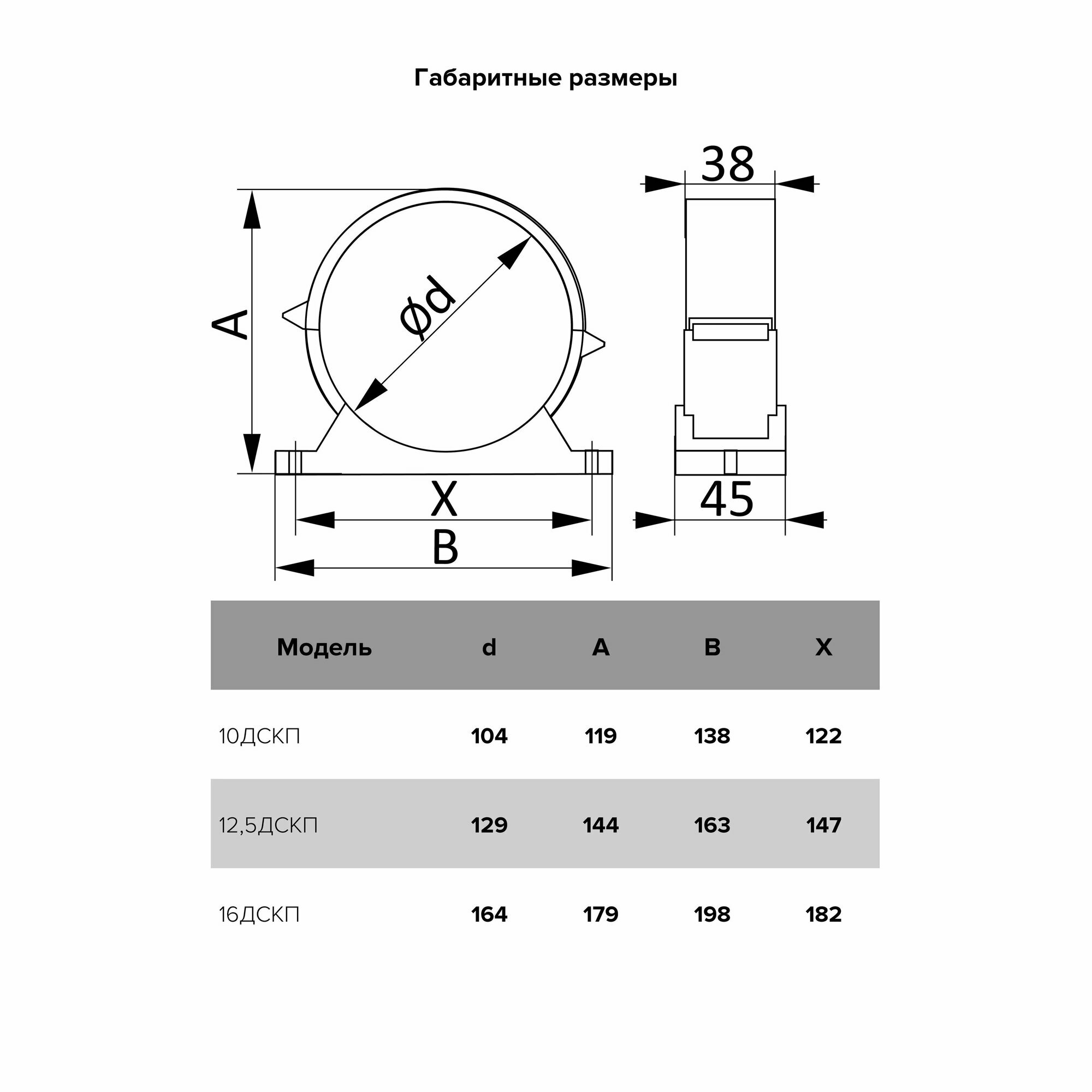 Держатель усиленный круглых воздуховодов с уплотнителем 16ДСКП d160 мм пластиковый