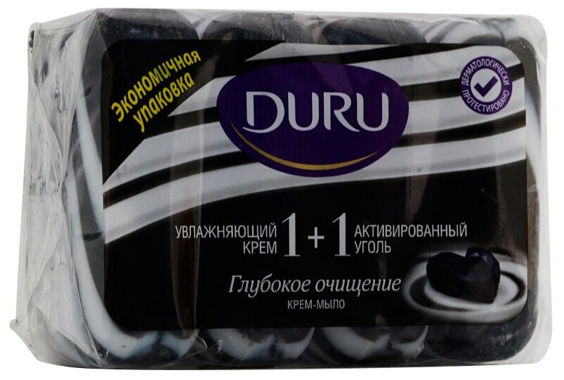 Крем-мыло Duru, 1+1 Глубокое очищение Увлажняющий крем и активированный уголь, 4 шт, 90 г