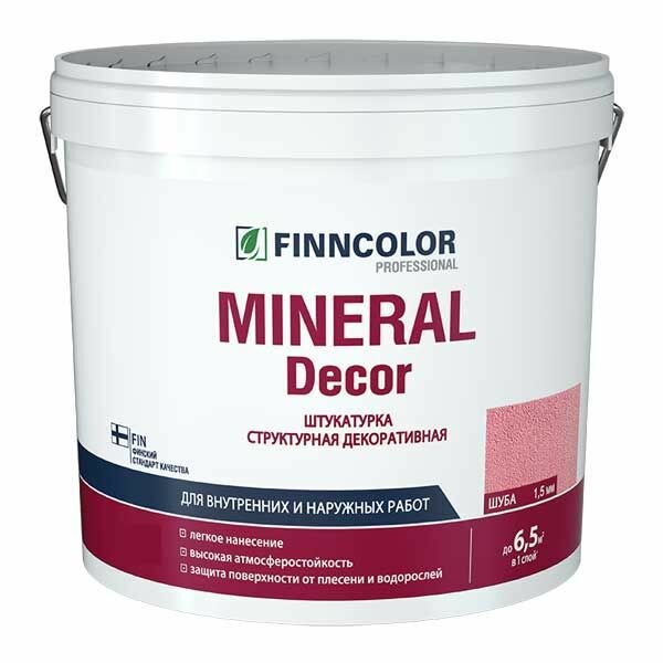 FINNCOLOR MINERAL DECOR штукатурка декоративная, структурная, шуба фракция 1,5 мм (16кг)