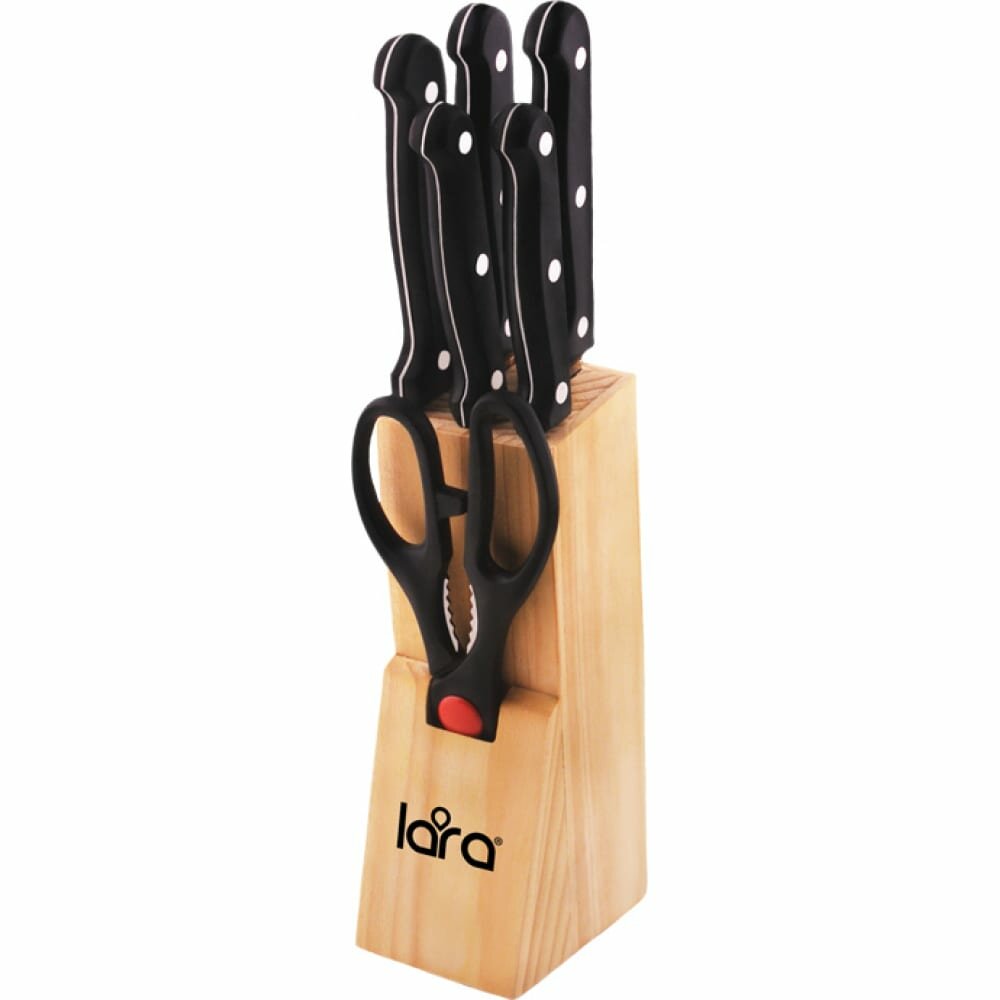 Купить Lara Набор ножей 7 предметов: деревянная подставка + 5 ножей + ножницы LR05-53