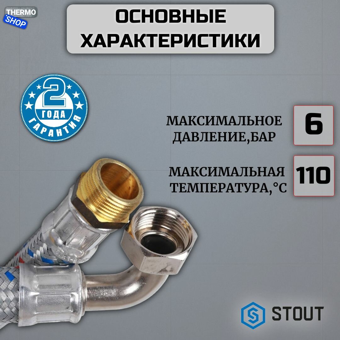 Гибкая подводка для воды с наружной и внутренней резьбой, Stout - р5924